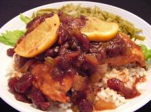 | Cranberry Orange Chicken - Crock Pot Recipe - Food.com chicken breast, cranberry sauce, hot sauce, cornstarch, mustard powder, cinnamon, orange, onion, celery, barbecue sauce, salt, honey, brown sugar, orange juice, lemon juice, water OUT OF THIS WORLD! Tender and delicious! Flavor Galore! This is one of my favorite dishes. I have found that bone-in chicken gives more flavor. I use the following method for fall-off-the-bone chicken...