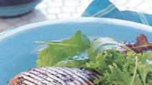 | Grilled Tuna With Herbed Mayonnaise Recipe by Healthycooking | ifood.tv tarragon, pepper, oregano, tuna, salt, mayonnaise, lemon juice, yogurt (plain) Combine first 5 ingredients in a small bowl; stir well, and set aside. Sprinkle salt and pepper over tuna; set aside. Prepare grill. Place tuna on a grill rack coated with cooking spray; grill 3 mi...