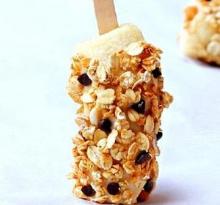 | Banana Canapes Recipe by Salad.Carnival | ifood.tv nuts, banana, lemon juice Cut bananas into pieces; dip into lemon juice. Roll in nuts to coat well. Insert cocktail picks and place in airtight container to freeze. Recipe Summary Difficulty Level: Easy Servings: 6 Nutri...