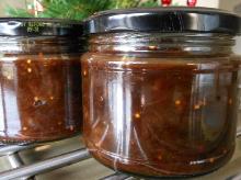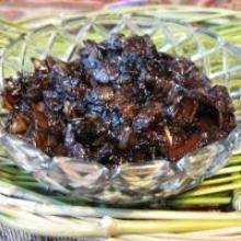 | Caramelised Red Onion Chutney Recipe Recipe - Food.com red onion, olive oil, mustard seed, red chili, bay leaf, balsamic vinegar, red wine vinegar, brown sugar This one is a really lovely chutney. Serving Size: 1 (1410) g Servings Per Recipe: 1 AMT. PER SERVING % DAILY VALUE Calories: 373.2 Calories from Fat 53 g 14 % Total Fat 6 g 9 % Saturated Fat 0....