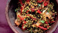 | Mung Beans with Caramelised Onions and Nigella Seeds olive oil, parsley, black onion seed, mung bean, shallot, onion, sun dried tomatoes, mustard, red wine vinegar A colourful medley of mung beans, caramelised onions and peppery nigella seeds. Inspired by Istanbul, this pulse based dish makes a great vegetarian main. Drain the mung beans, place in a saucepan and...