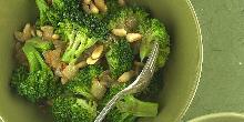 | Broccoli with Caramelized Onions & Pine Nuts Recipe | EatingWell olive oil, pine nut, almond, pepper, onion, broccoli, balsamic vinegar, salt Broccoli's impressive nutritional profile (think folate, vitamins C and A, fiber, phytochemicals) puts it high on the list of foods to eat more of, an inviting task when you toss it with crunchy p...