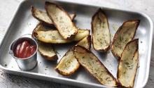 | Crispy Potato Wedges Recipe oil, pepper, potato, garlic, salt French fry fans will fall for these easy oven-baked fries! Makes for a great party snack! Place potatoes in a large bowl; add cold water to cover. Let stand for 15 minutes. Preheat oven to 425 - degr...