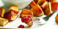 | Crispy Potatoes with Spicy Tomato Sauce Recipe | EatingWell red pepper, olive oil, pepper, paprika, potato, garlic, tomato, salt This recipe is inspired by our love of the Spanish tapa Patatas Bravas--crispy bites of potatoes sometimes served with a spicy tomato sauce. If you're not in the mood for a spicy sauce, just add a...