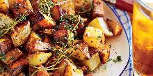 | Crispy Potatoes Recipe | Southern Living | MyRecipes canola oil, thyme, pepper, dried onion, dried garlic, sweet potato, potato, salt When roasting potatoes, be sure and don’t crowd the pan; potatoes are just like children in a car – they don’t like to be touched! Overcrowding will result in steaming, m...