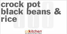 | Crock Pot Black Beans & Rice Recipe | CDKitchen.com chili dried/powder, hot sauce, black beans, vegetable stock, oregano, cumin, basil, carrot, onion, garlic, celery, tomato, rice This is a flavorful beans and rice dish. It starts with canned black beans in the crock pot combined with lots of herbs and spices. The rice is added at the end to keep it from getting overcooked. Com...