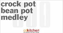 | Crock Pot Bean Pot Medley Recipe | CDKitchen.com red bean, great northern bean, red bell pepper, green bell pepper, black beans, pepper, mustard powder, bay leaf, lima bean, black-eyed pea, onion, apple cider vinegar, tomato ketchup/catsup, brown sugar, water A recipe for Bean Pot Medley made in the crock pot made with black beans, red beans, Great Northern beans, black-eyed peas, baby lima beans, ketchup Combine all ingredients in slow cooker; stir. Cover...