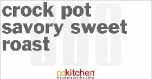 | Savory Sweet Crock Pot Roast Recipe | CDKitchen.com mushroom soup, oil, onion, mustard, worcestershire sauce, white vinegar, salt, sugar, water A 5-star recipe for Savory Sweet Roast made in the crock pot made with oil, blade or chuck roast, onion, cream of mushroom soup, water, sugar, white vinegar Heat a small amount of oil in a heavy skill...