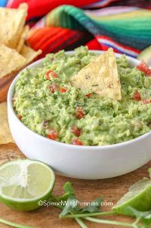 | Our Fave Guacamole Recipe (easy) - Spend With Pennies red onion, coriander, jalapeno, avocado, lime, garlic, tomato, salt Guacamole is one of my favorite things ever. If you need a quick contribution for a party or potluck, you can always rely on guacamole dip! Cut avocados in half, peel and remove the pit. Squeeze half...