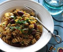 | Fusilli Pasta with Eggplant and Corn | Australia's Best Recipes kalamata olive, oil, pepper, parsley, garlic, tomato, sweetcorn, aubergine/eggplant, salt, pasta Fusilli Pasta with Eggplant and Corn is a hearty dish without being heavy. Cook the pasta according to packet instructions. Drain well and set aside. Deep fry the eggplant until golden brown. Drain a...