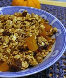 | Baked Homemade Granola (Lower Fat) Recipe - Food.com oats, nuts, vanilla, nutmeg, cinnamon, date, raisin, apricot, maple syrup, water By making your own granola you can reduce the fat and increase the richness of nuts and seeds. This is great alone as a snack or on top of yogurt or anything! For the mixed nuts and seeds you can use ...