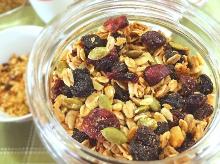 | Homemade Cranberry Nut Granola pumpkin seeds, dried cranberry, cooking spray, oats, sunflower seeds, almond, cinnamon, salt, brown sugar, cranberry juice Preheat the oven to 180 C / gas mark 4. Spread the pumpkin seeds and sunflower seeds on a baking sheet. Bake for 8 to 10 minutes until lightly toasted. Set aside to cool. Reduce the oven temperature t...