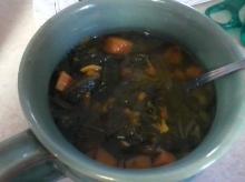 | Green Vegetable Soup With Miso Broth Recipe shiitake mushroom, miso, sesame seed oil, spring onion, celery, zucchini/courgette, spinach, soy sauce, water This a great soup for dinner. Pour enough boiling water to cover mushrooms. Set aside for at least 5 minutes. (You may need to place a second bowl or plate over mushrooms to keep them submerged.) Ad...