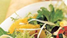| Mixed Greens With Orange Juice Vinaigrette Recipe - Food.com spring greens, orange peel, olive oil, pepper, lettuce, apple cider vinegar, salt, orange juice Very simple salad with delicious dressing. Serving Size: 1 (36) g Servings Per Recipe: 6 AMT. PER SERVING % DAILY VALUE Calories: 46.4 Calories from Fat 40 g 88 % Total Fat 4.5 g 6 % Saturated F...