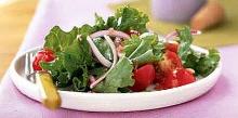 | Simple Green Salad with Vinaigrette Recipe | MyRecipes red onion, olive oil, pepper, tomato, lettuce, mustard, red wine vinegar, salt Toss any lettuce or field greens you have on hand with this easy dressing of olive oil, vinegar, and Dijon mustard. Instructions Checklist Step 1 Combine minced onion and vinegar in a small bowl; le...