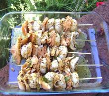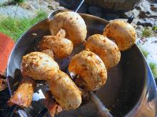 | Mushroom Kebabs for the Grill Recipe - Food.com olive oil, pepper, basil, mushrooms, garlic, mustard, apple cider vinegar, salt, sugar I tasted these first at a Saturday Farmers' Market at Stellenbosch (near Cape Town). The lady who sold them had several types of mushrooms on her skewers and grilled them over coals -- so use as m...