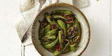 | Grilled Okra & Hot Peppers Recipe | EatingWell olive oil, pepper, chili pepper, okra, salt The fire of the grill creates a tender texture while infusing the okra with subtle heat in this easy okra recipe. You can adjust the level of spiciness in this side dish by choosing chiles that are ei...