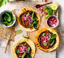 | Grilled Pepper Tacos Recipe with Mole Sauce | olivemagazine red onion, chipotle, green pepper, chili dried/powder, vegetable stock, rapeseed oil, peanut, thyme, coriander, cloves, red chili, cinnamon, cumin, allspice, lime, raisin, onion, garlic, tomato, tortilla, bread, brown sugar, dark chocolate These vegan tacos feature mole sauce – a blend of smoky chillies, peanuts, spices and dark chocolate which compliments the sweet bitterness of green peppers STEP 1 Bring 250ml of the vegetable ...