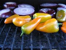 | Purple Onion and Sweet Red Peppers Recipe by Grill.Master | ifood.tv cooking spray, pepper, onion, garlic, sweet pepper, lemon juice GETTING READY 1 Throughly clean the peppers and scoop out the seeds. 2 Remove the outer skin from the onion and slice into rings 1/4-inch thick. 3 Coat the grill with cooking spray and preheat for ...