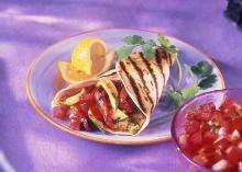 | Grilled vegetable wraps with salsa and guacamole recipe - BBC Food yellow/orange pepper, red pepper, coriander leaf, green chili, avocado, lime, onion, garlic, zucchini/courgette, tomato, tortilla A Friday night quick supper that's healthy and delicious - who could ask for anything more? To make the salsa, mix the tomatoes, garlic, onion, chilli and coriander together and leave for about 30...