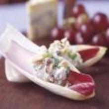 | Apple and blue cheese stuffed endives blue cheese, hazelnut, apple, celery, endive, mayonnaise, lemon juice, water In a small mixing bowl,combine lemon juice and water. Mix well and add copped apples. Toss well to coat. Drain and pat dry with paper towel. Using the same mixing bowl,combine the apple,celery,blue ch...
