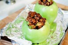 | Stuffed Apples Recipe - Food.com butter, oats, pecan, apple, brown sugar Top this oven-baked treat with ice-cream or whipped cream for a warm fall treat.Recipe makes 4 apples. Serving Size: 1 (1028) g Servings Per Recipe: 1 AMT. PER SERVING % DAILY VALUE Calories: 273.5...