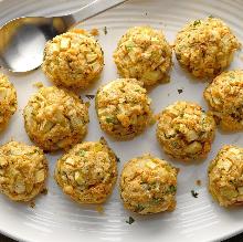 | Apple Stuffing Balls Recipe: How to Make It butter, thyme, pepper, parsley, apple, onion, celery, eggs, salt, bread crumbs I served these fun appetizers for the first time on Thanksgiving. My family asked me to make them several times after that, so the tasty little bites made an appearance on my Christmas spread that yea...