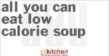 | All You Can Eat Low Calorie Soup Recipe | CDKitchen.com vegetable soup, green bell pepper, hot sauce, onion soup, vegetable juice, pepper, spring onion, celery, tomato, cabbage, salt, stock or broth A 5-star recipe for All You Can Eat Low Calorie Soup made with green onions, cabbage, celery, V-8 vegetable juice, tomatoes, green bell peppers, onion Combine all the ingredients in a Dutch oven and b...