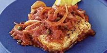 | Tuna with Tomato-Caper Sauce Recipe | MyRecipes olive oil, pepper, oregano, caper, onion, tomato, tuna, balsamic vinegar, salt, red wine A friend's gift of freshly baked bread prompted Elizabeth Farquhar to come up with a saucy dish for tuna steaks; the flavorful tomato sauce is great for dipping bread into. PREP AND COOK TIME: Abo...