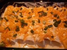 | Crab Meat Enchiladas Recipe by Quick.easy.cooking | ifood.tv butter, hot sauce, oil, olive, spring onion, crab, salt, rice, monterey jack cheese, tortilla, vegetable fat spread, sour cream, water Preheat oven to 350 F (177 C). Cook rice with water, salt and butter or margarine according to package directions. Stir crabmeat, onion, 1 cup cheese and 3 tablespoons of the enchilada sauce into co...