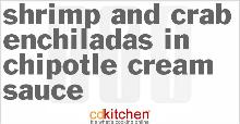 | Shrimp and Crab Enchiladas in Chipotle Cream Sauce : Recipe - GourmetSleuth adobo, ancho chili, chipotle, corn oil, cumin, bay leaf, onion, garlic, tomatillo, tomato, shrimp, crab, salt, tortilla, sour cream, milk This Shrimp and Crab Enchiladas in Chipotle Cream Sauce is a lightened up enchilada recipe. The sauce uses tomatillos, chipotles in adobo sauce, cumin, garlic and tomatoes. Save extra calories by micr...