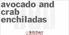 | Avocado and Crab Enchiladas Recipe | CDKitchen.com butter, black olive, hot sauce, peanut oil, avocado, mushrooms, onion, crab, cheddar cheese, tortilla, lemon juice, sour cream A recipe for Avocado and Crab Enchiladas made with onion, black olives, mushrooms, butter, crab meat, avocado, sour cream, lemon juice Saute onion, chopped olives and mushrooms in butter. Remove from ...