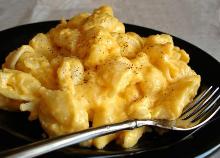 | Ron's Crock Pot Mac and Cheese Recipe - Food.com butter, velveeta cheese, pepper, mustard powder, eggs, salt, cheddar cheese, pasta, sour cream, milk I've fiddled with a variety of ingredients and methods over time to try and come up with the best Macaroni and Cheese. This is the combination that won. Serving Size: 1 (233) g Servings Per Recip...