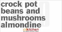| Crock Pot Beans And Mushrooms Almondine Recipe | CDKitchen.com almond, mushrooms, onion, green beans, vegetable fat spread A recipe for Beans And Mushrooms Almondine made in the crock pot made with frozen cut green beans, onion, sliced mushrooms, slivered almonds Spray a slow cooker container with butter-flavored cooking ...