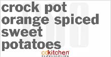 | Crock Pot Orange-Spiced Sweet Potatoes Recipe | CDKitchen.com butter, pecan, vanilla extract, nutmeg, cinnamon, orange, sweet potato, salt, brown sugar A 5-star recipe for Orange-Spiced Sweet Potatoes made in the crock pot made with sweet potatoes, brown sugar, butter, ground cinnamon, ground nutmeg, orange, salt Place sweet potatoes in bottom of slo...