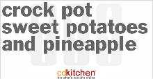 | Crock Pot Sweet Potatoes And Pineapple Recipe | CDKitchen.com butter, nuts, cinnamon, pineapple, sweet potato, brown sugar, flour A 5-star recipe for Sweet Potatoes And Pineapple made in the crock pot made with sweet potatoes, pineapple pie filling, butter, brown sugar, cinnamon, flour In 5 quart slow cooker sprayed with vegetab...
