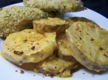 | Crock Pot Cheddar Potato Slices Recipe - Food.com mushroom soup, pepper, paprika, potato, cheddar cheese This is a great potato dish made in the crock pot. Serving Size: 1 (182) g Servings Per Recipe: 6 AMT. PER SERVING % DAILY VALUE Calories: 281.3 Calories from Fat 144 g 51 % Total Fat 16.1 g 24 %...