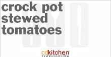 | Crock Pot Stewed Tomatoes Recipe | CDKitchen.com butter, green bell pepper, pepper, parsley, bay leaf, basil, onion, garlic, celery, tomato, salt, vegetable fat spread, sugar A 5-star recipe for Stewed Tomatoes made in the crock pot made with tomatoes, butter or margarine, onion, celery, green bell pepper, sugar, dried basil, bay Quickly dip tomatoes in boiling water; remo...