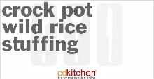 | Crock Pot Wild Rice Stuffing Recipe | CDKitchen.com dried cranberry, wild rice, vegetable stock, mushroom soup, onion soup mix, pecan, sage, pepper, mushrooms, sweet potato, onion, garlic, seasoning A recipe for Wild Rice Stuffing made in the crock pot made with wild rice, onion soup mix, cream of mushroom soup, mushrooms, sweet potato, garlic Place all ingredients except pecans in crockpot. Stir...