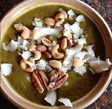| Curried spinach & lentil soup recipe | BBC Good Food chili dried/powder, vegetable stock, rapeseed oil, cashew, curry powder, coriander, cumin, lentil, lemon, onion, garlic, spinach Pack in the nutrients and the flavour with our curried spinach and lentil soup. It's full of iron and vitamin C and is served with a cashew chutney topping STEP 1 Heat 1 tbsp oil in a large sauce...