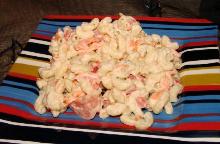 | Easy Macaroni Salad With Shrimp Recipe - Food.com green pepper, celery seed, shrimp, mayonnaise, pasta This is my own recipe and the celery seed and the shrimp blend perfectly. Only 5 ingredients and easy to make. The longer it sits, the more flavorful it becomes, I like to make mine the night before w...