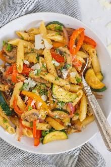 | Easy Pasta Primavera Recipe - NatashasKitchen.com butter, red onion, bell pepper, olive oil, pepper, parsley, mushrooms, garlic, zucchini/courgette, salt, parmesan cheese, pasta, lemon juice The easiest recipe for Pasta Primavera with sauteed fresh vegetables in a light lemon and garlic sauce. The perfect spring or summer pasta. Cook pasta in salted water according to package instructions...