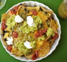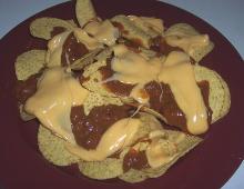 | Easy Nachos Deluxe Bake Recipe - Food.com refried beans, black beans, coriander, jalapeno, tomato, tortilla chips, monterey jack cheese, cheddar cheese We love this at our house! Adjust all amounts to taste. Serving Size: 1 (177) g Servings Per Recipe: 6 AMT. PER SERVING % DAILY VALUE Calories: 520.5 Calories from Fat 280 g 54 % Total Fat 31.1 g...