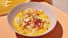 | Somen Noodle Salad With Ginger-Cilantro Dressing Recipe - Food.com dressing, red bell pepper, sesame seed oil, peanut, curry powder, ginger root, coriander leaf, coconut, lime, carrot, spring onion, garlic, spinach, salt, rice vinegar, noodles, honey, lime juice A copycat recipe of a Trader Joe's pre-made salad I have tried to duplicate. All ingredient amounts are estimated. Serving Size: 1 (168) g Servings Per Recipe: 4 AMT. PER SERVING % DAILY VALUE ...