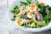 | Broccolini and soba noodle salad with wasabi dressing and ginger salt - Recipes - delicious.com.au peanut oil, wasabi, ginger root, edamame, avocado, eggs, soy sauce, salt, mirin, noodles Add some serious kick to your dinner with this punchy wasabi dressing that'll lift your noodle-game to new levels. 1. Bring a saucepan of water to the boil over medium heat. Add the eggs and cook...