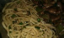 | Lillian's Spring Onion and Ginger Noodles Recipe - Food.com oyster sauce, sesame seed oil, peanut oil, white peppercorn, ginger root, spring onion, salt, noodles This recipe comes from a Ken Hom cookbook. It is a quick, easy side dish and holds up well at potlucks. Serving Size: 1 (95) g Servings Per Recipe: 4 AMT. PER SERVING % DAILY VALUE Calories: 413.9 ...