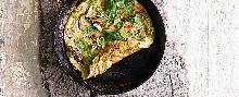 | Mushroom Omelette Recipe with Ginger and Spring Onions | Olive Magazine shiitake mushroom, sesame seed oil, peanut oil, sesame seed, ginger root, coriander, red chili, spring onion, eggs Try our mushroom omelette recipe with ginger and spring onions. This easy omelette recipe is an easy mushroom omelette recipe with spring onions and ginger STEP 1 Heat 1 tsp of each oil in a smallish...