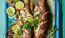 | Rainbow Trout with Ginger and Spring Onions Recipe | Ainsley Harriott's Caribbean Kitchen olive oil, tamarind, ginger root, coriander, green chili, red chili, lime, spring onion, garlic, trout, salt, sugar Ainsley Harriott's recipe for Tamarind Rainbow Trout with Ginger and Spring Onions is bursting with the delicious flavours of the Caribbean. This fuss-free recipe is perfect for a special dinner f...
