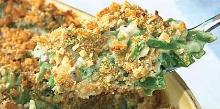 We reduced the fat but not the flavor in this family favorite recipe by substituting crushed Melba rounds and onion flakes for the canned fried onion rings.