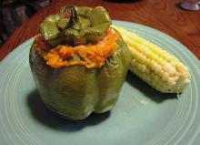 | Shrimp-Stuffed Green Peppers Recipe - Mexican.Food.com green bell pepper, cumin, spring onion, shrimp, salt, salsa, rice, sour cream Bell peppers stuffed with a tasty mixture of rice, shrimp, salsa and sour cream, then baked. For the salsa used in this recipe see Recipe #362382 which is the original one called for. From Salsa Cooki...